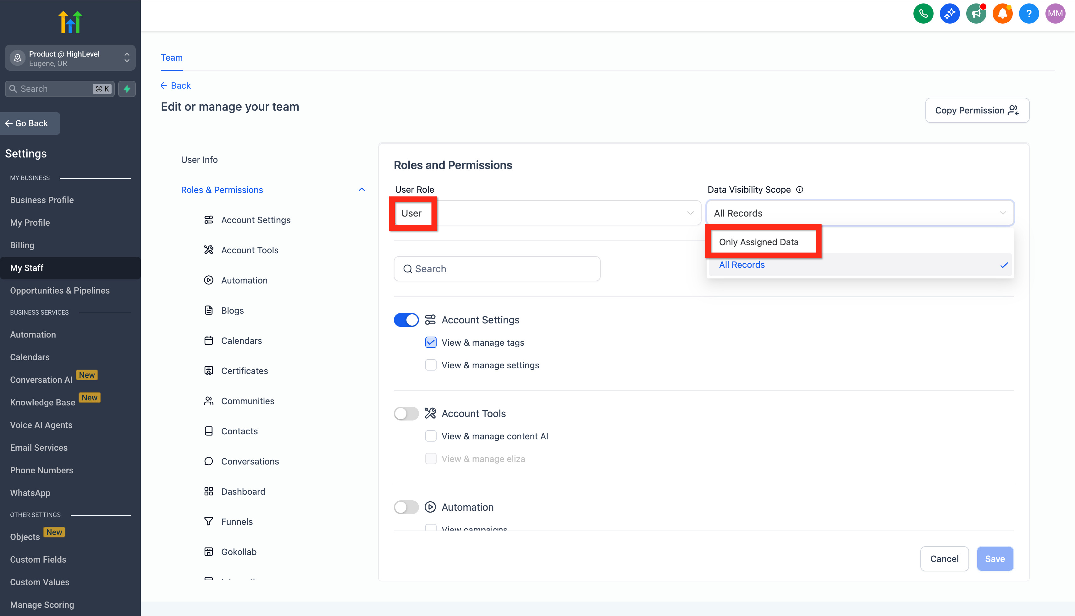 R: Las llamadas se realizarán automáticamente desde el número asignado si el usuario solo tiene habilitados los datos asignados y su rol es Usuario . Si el usuario tiene habilitados todos los registros (en lugar de solo los datos asignados), puede cambiar el número de salida en el menú desplegable «Llamar desde» del marcador.