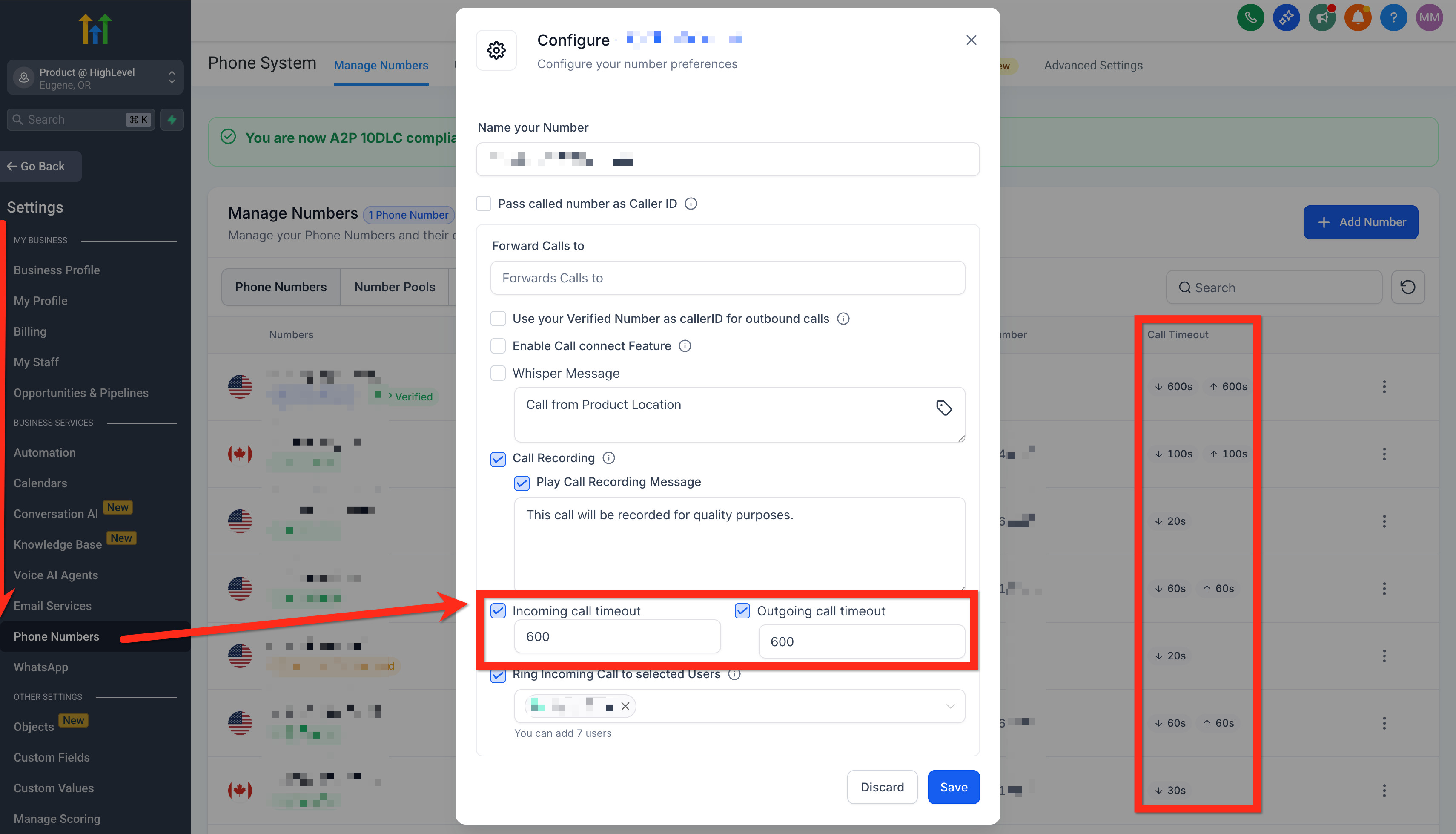 R: Por lo general, no recomendamos eliminar la advertencia de grabación de llamadas, ya que suele ser un requisito legal. Si desea desactivarla o modificarla, puede obtener más información en la sección «Configuración del número de teléfono explicada» .